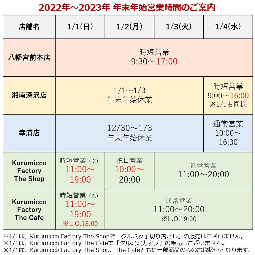 ※1月1日(日)は「クルミミカップ」の販売はございません。