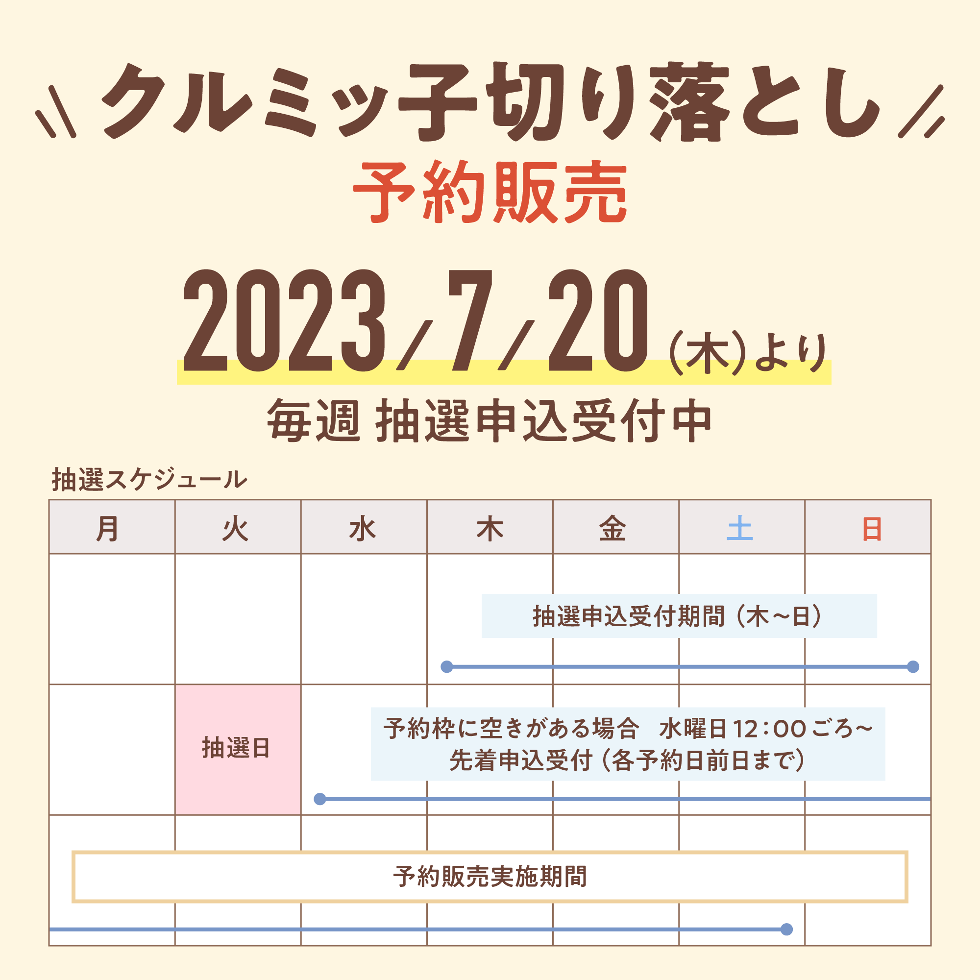 ※2023年7月20日~、毎週抽選申込の受付を開始いたします