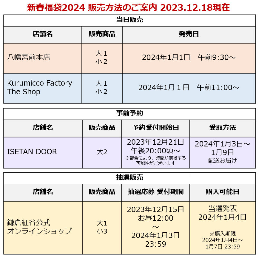 ◆鎌倉紅谷 公式オンラインショップ 福袋抽選販売に関する注意事項◆