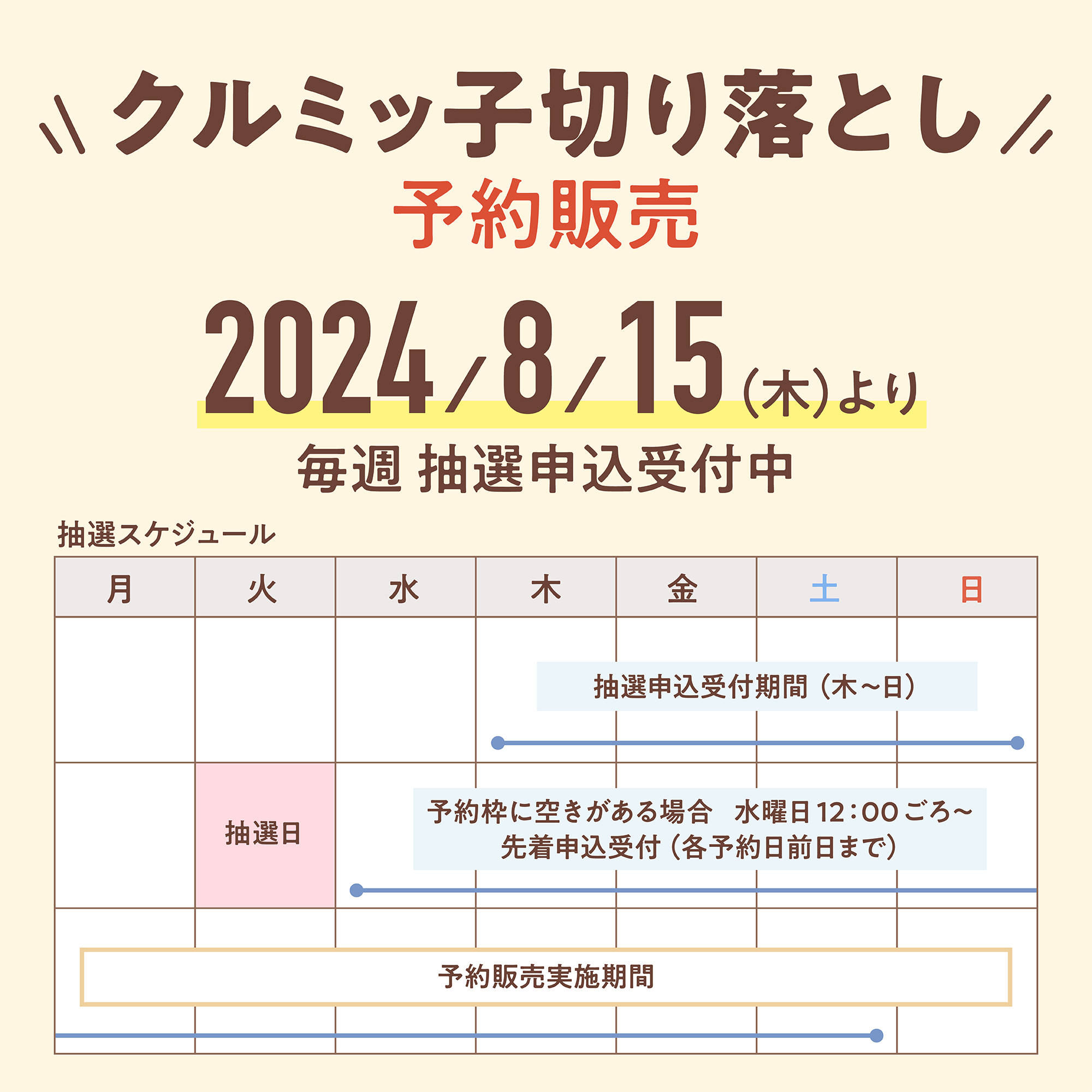 ※2024年8月15日~、毎週抽選申込の受付を開始いたします