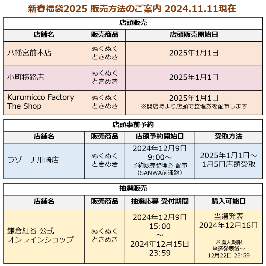 ◆鎌倉紅谷 公式オンラインショップ 福袋抽選販売に関する注意事項◆
