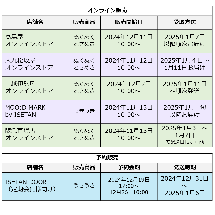 ※販売方法の詳細は各百貨店の販売サイトをご確認いただきますようお願い申し上げます。