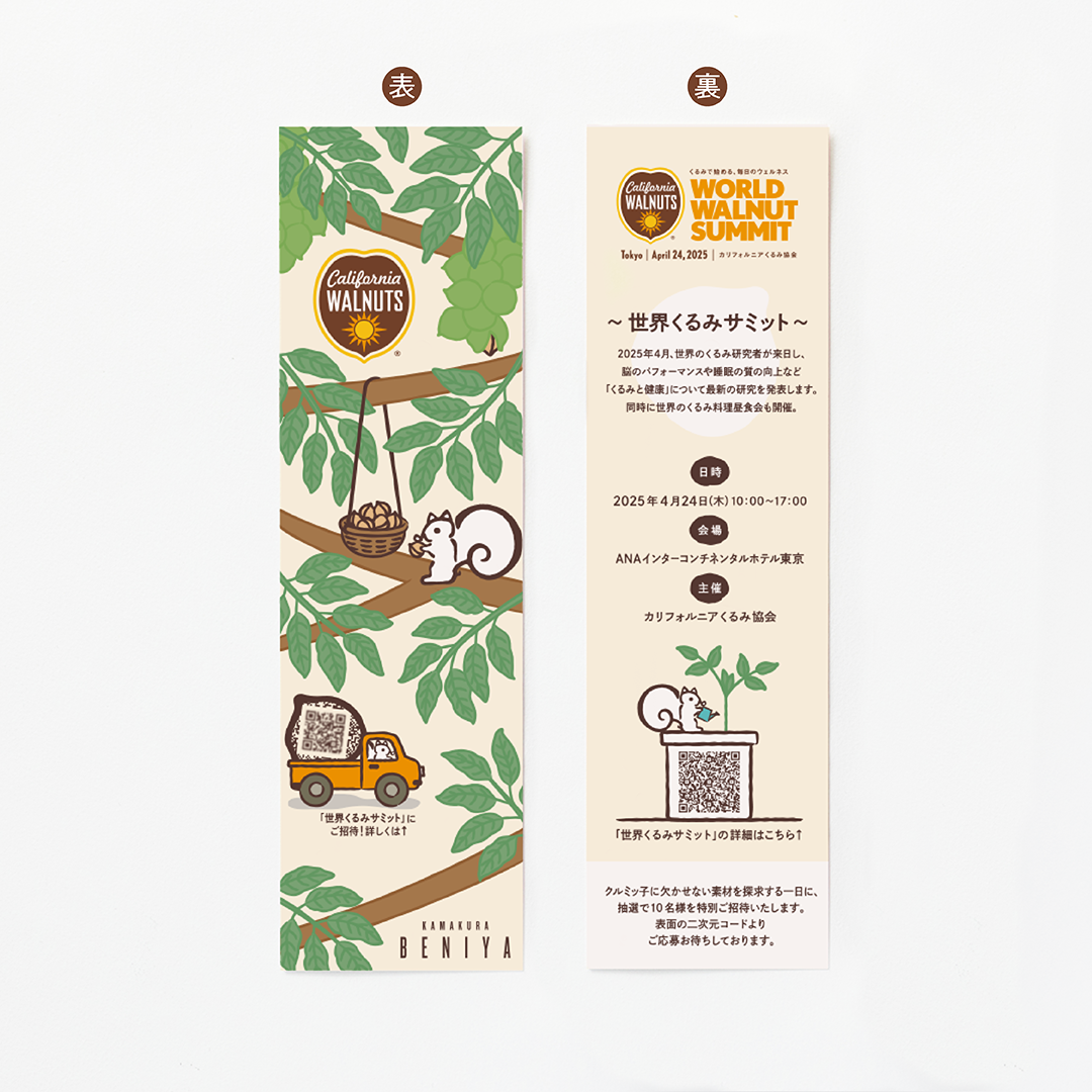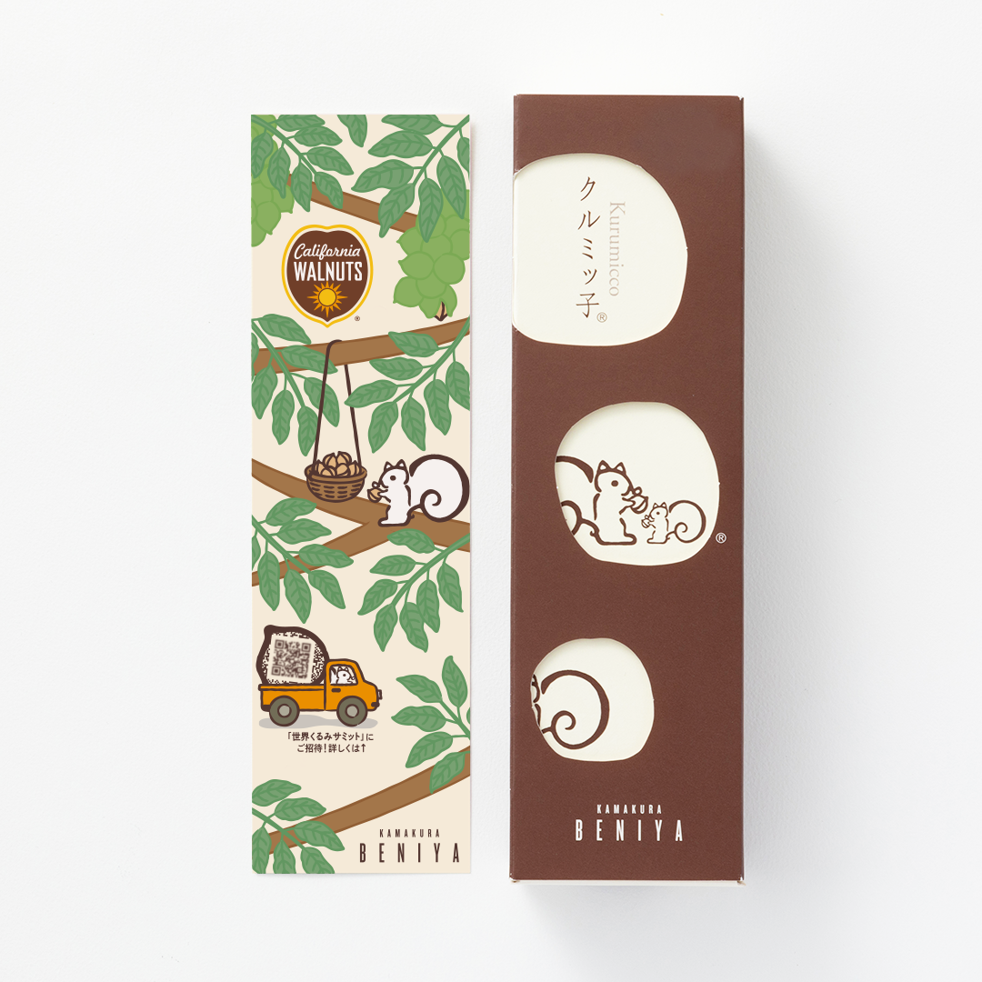 2025年4月に「世界くるみサミット」が開催されることに伴い、「クルミッ子8個入」にカリフォルニアくるみ協会とコラボレーションしたデザインの短冊型カード(かわるっ子)が付いた商品、「クルミッ子かわるっ子(世界くるみサミット)」付きクルミッ子8個入を販売いたします。