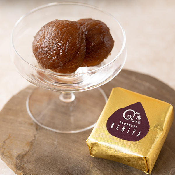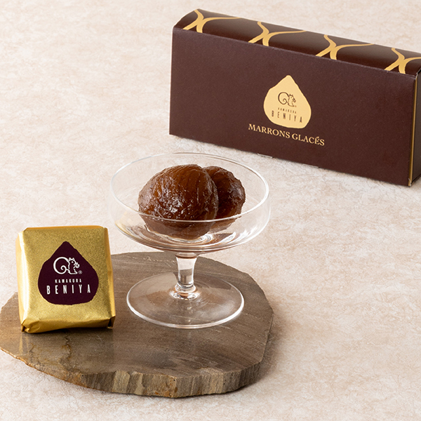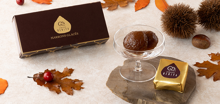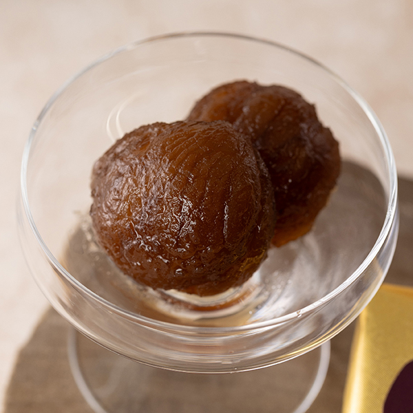 イタリア産の栗は、高級感のある茶色と濃厚で華やかな風味が特長です。約1週間、糖度を少しずつ高くし、じっくりと蜜漬けにすることでやわらかな食感に仕上げました。
