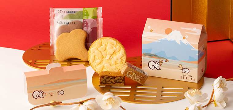 たっぷりのクルミと自家製キャラメルをバター生地ではさみ焼き上げた「クルミッ子」、練乳のコクのある甘さとザクッとした食感が特徴の「あじさい」、軽やかな食感と素材の味を活かした「鎌倉だより」の3種類を、少しずつ詰め合わせました。