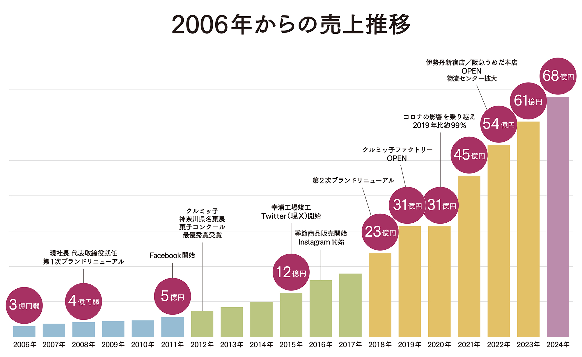 私が社長に就任したのが2008年。それ以降、副社長である妻と共に取り組んだブランディング戦略や組織づくりや前述した多くの支えによって、この17年で鎌倉紅谷は大きな成長を果たすことが出来ました。